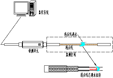 當有液體與液冷感應線接觸時,液體浸入感應線編織層,使兩根感應線芯導通,形成回路,檢測模塊檢測到漏液情況,發(fā)出報警信號。