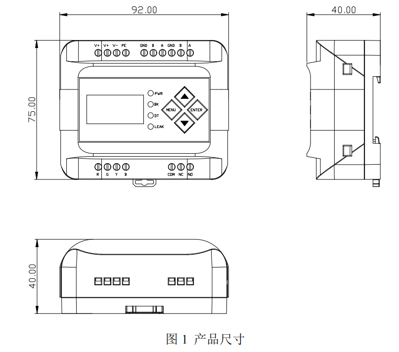 控制器可通過面板按鈕直接設置通訊地址、波特率等。電源、通訊、感應線與繼電器輸出接口如圖所示: