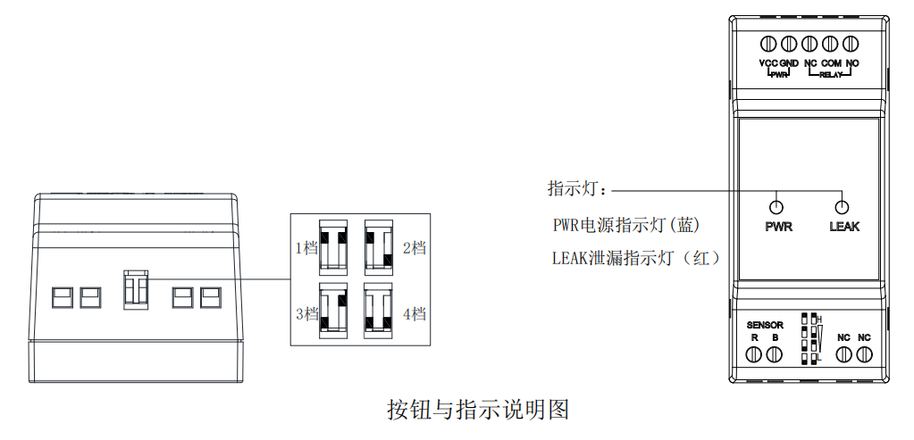 3. 控制器設(shè)置有一個(gè)靈敏度調(diào)節(jié)撥碼開關(guān),可適應(yīng)不同環(huán)境下的漏液檢測(cè)。1 至 4 檔檢測(cè)靈敏度依